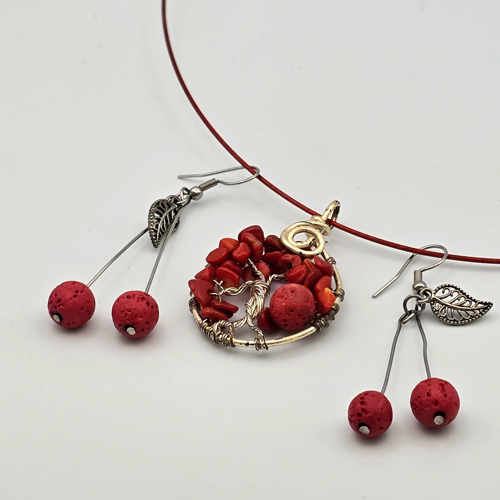 Cercei Cirese din Lavă Vulcanică Parfumate – Bijuterii Aromaterapeutice Naturale | Difuzor pentru Uleiuri Esențiale | Handmade