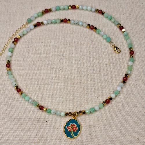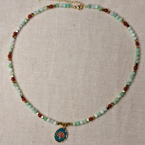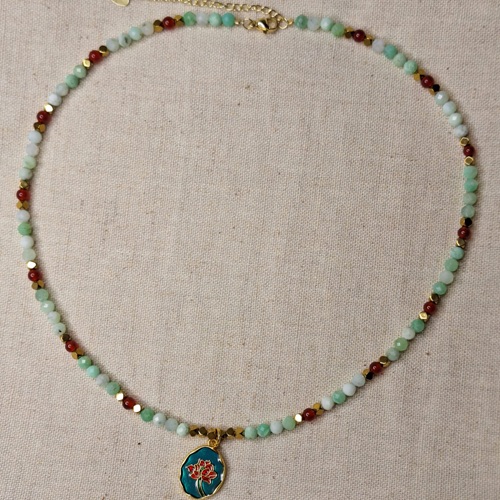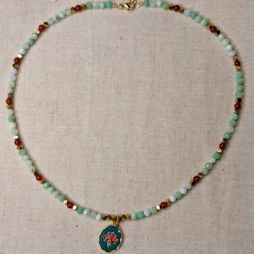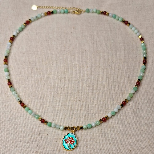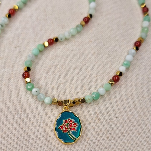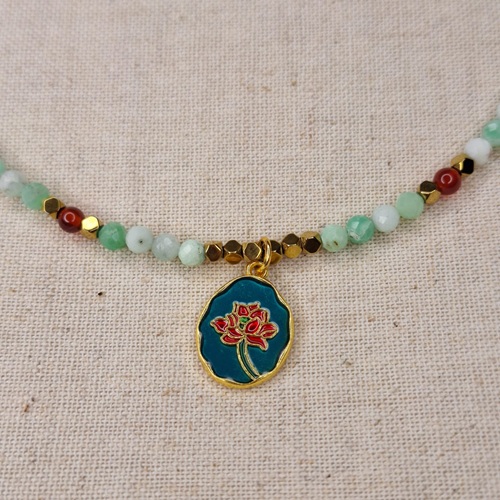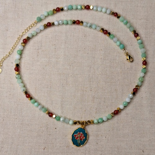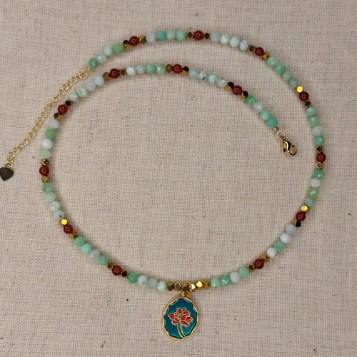 Colier crisopraz carneol hematit cu pandantiv floare – prospetime, vitalitate si echilibru
