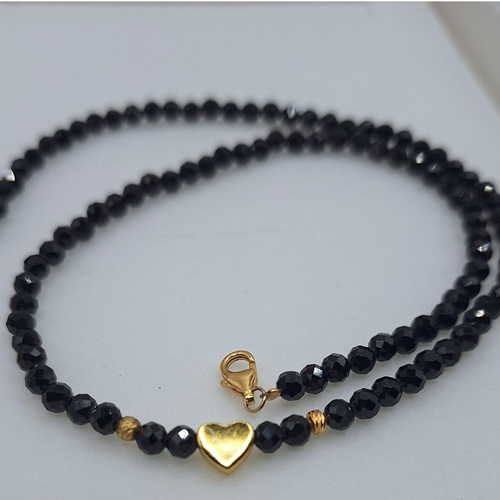 Acest colier este realizat manual, cu grijă la fiecare detaliu, folosind bilute de turmalină neagră microfatetată de 3 mm, care oferă un luciu subtil și un efect de sclipire la lumină. Accesoriile sunt din argint placat cu aur, adăugând o notă de lux și rafinament. Lungimea standard este de 42 cm, însă, dacă îți dorești o altă dimensiune, este suficient să menționezi acest lucru în comentariul comenzii.
