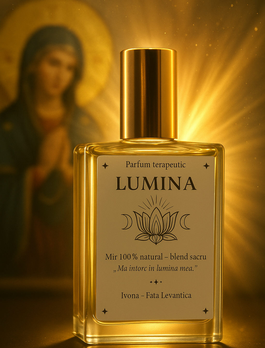 LUMINA este un parfum sacru cu mir și tămâie, 100% natural, creat ca un ritual olfactiv pentru liniște, protecție și întoarcere în propria lumină. Este mai mult decât un parfum – este o stare, o așezare interioară, un spațiu de pace.